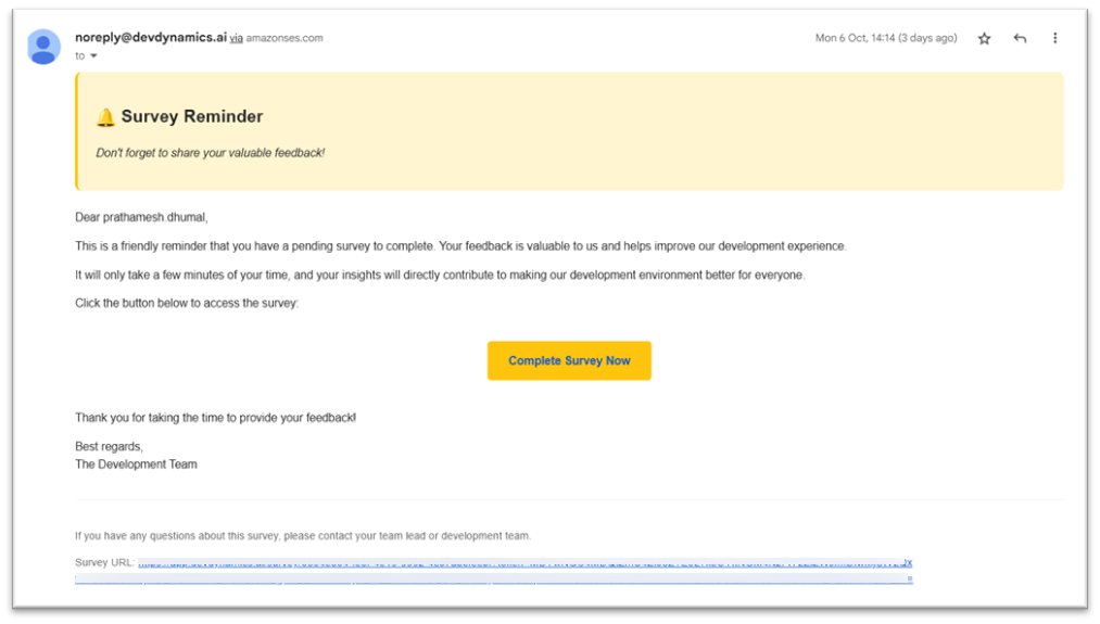 • First reminder is sent on Day 3 after the survey starts.