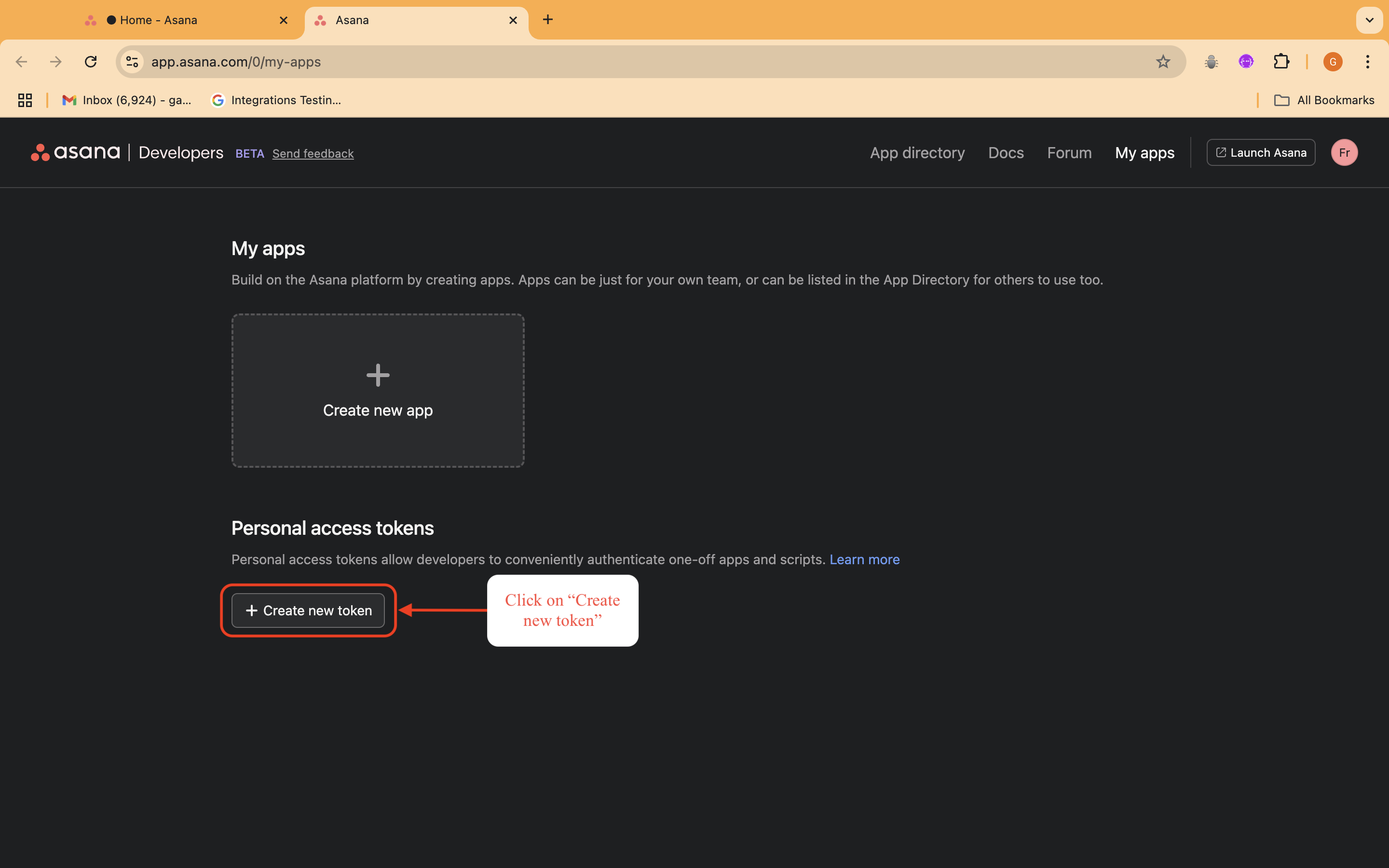 <figure><img src="https://4171758421-files.gitbook.io/~/files/v0/b/gitbook-x-prod.appspot.com/o/spaces%2FS4rgvJ71tpXan8RhYTT4%2Fuploads%2Fgit-blob-51632c5f944839c097ce12bc57511d9fad816d09%2Fasana-click-create-new-token.png?alt=media" alt=""><figcaption></figcaption></figure>