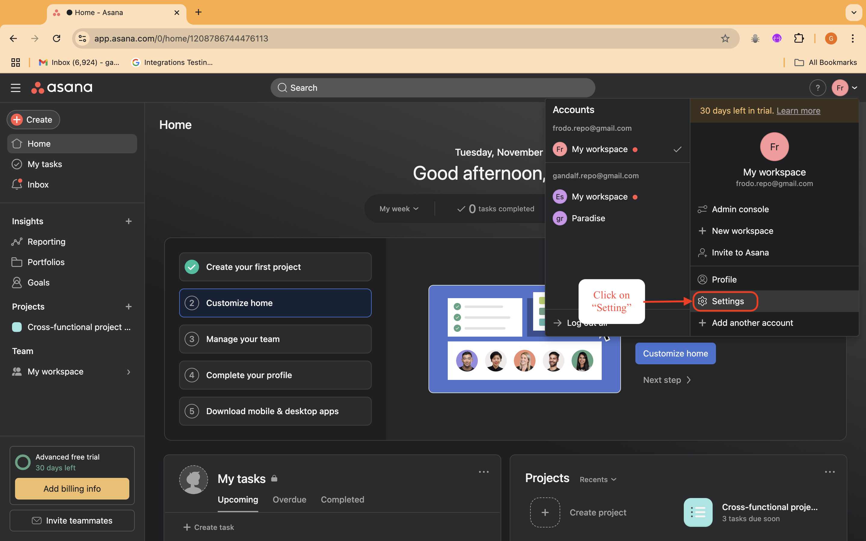 <figure><img src="https://4171758421-files.gitbook.io/~/files/v0/b/gitbook-x-prod.appspot.com/o/spaces%2FS4rgvJ71tpXan8RhYTT4%2Fuploads%2Fgit-blob-7e4cf8ecebd7cb0ff0daade87990951663cfbdcc%2Fasana-go-to-setting-from-profile.png?alt=media" alt=""><figcaption></figcaption></figure>