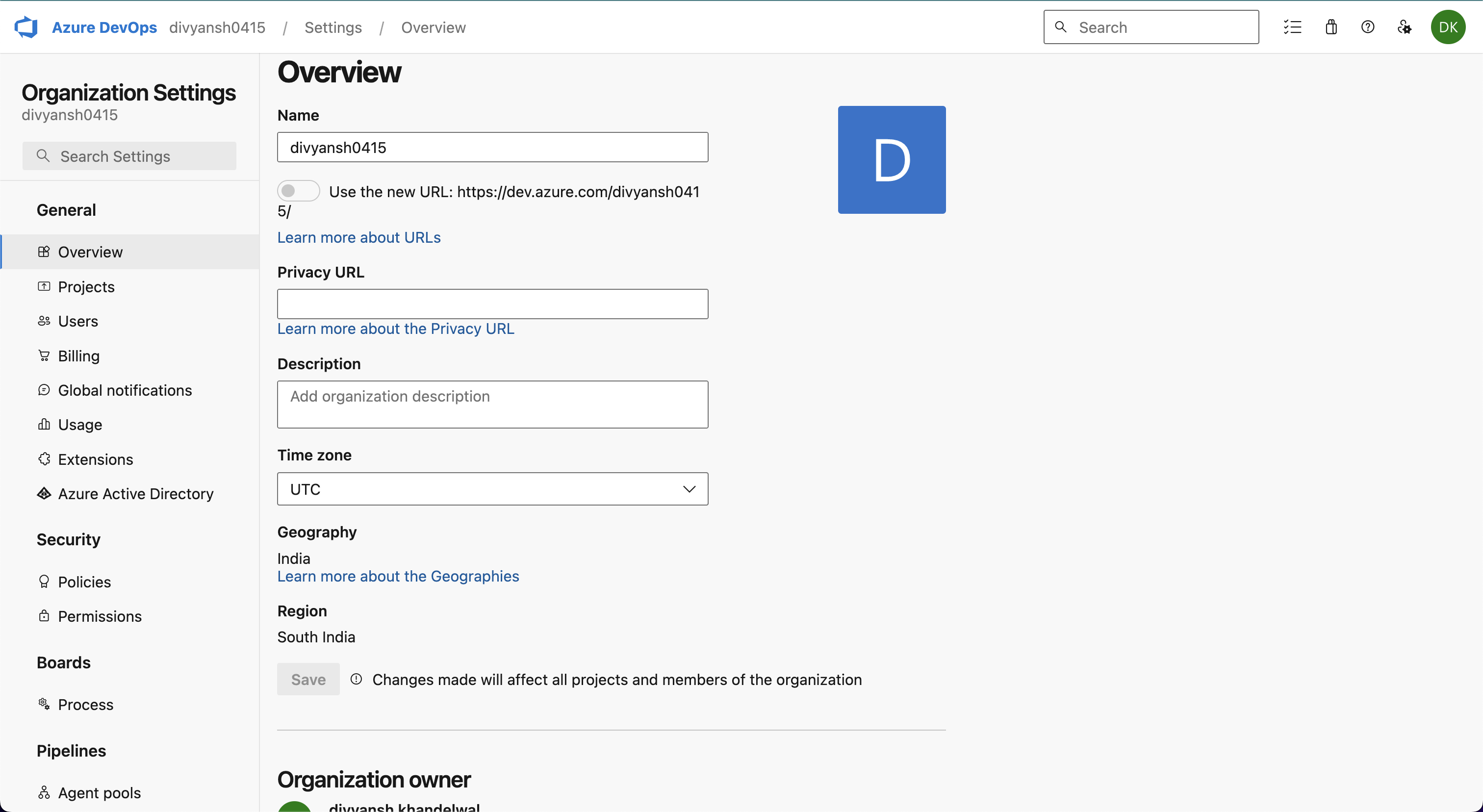 7. The organization's name can be found on the organization's settings page or from the breadcrumbs in the top bar (divyansh0415 in the screenshot below) \\