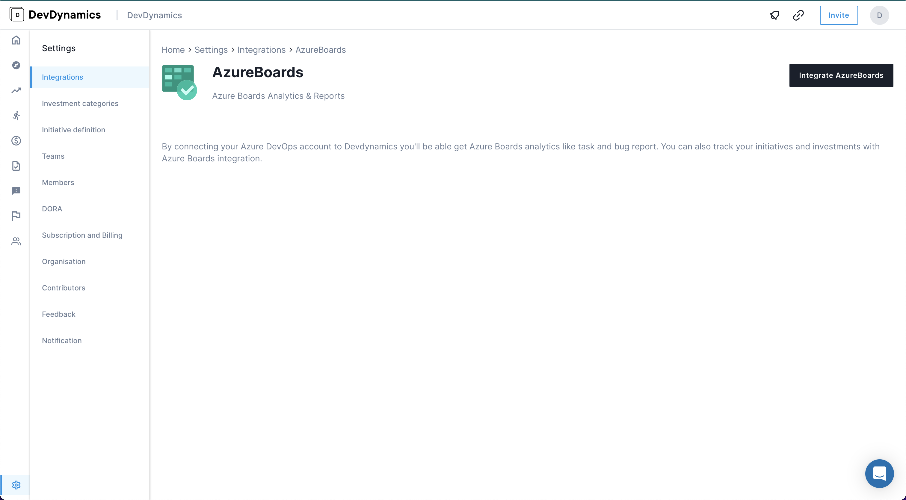 8. Paste the API token and Organization name from Azure in the integration details and press the integrate button.