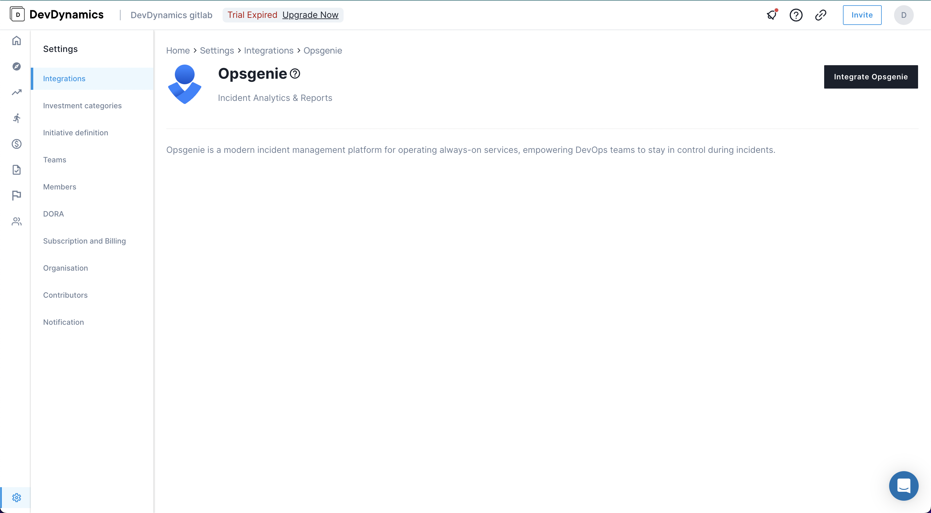 Click on Integrate under Opsgenie