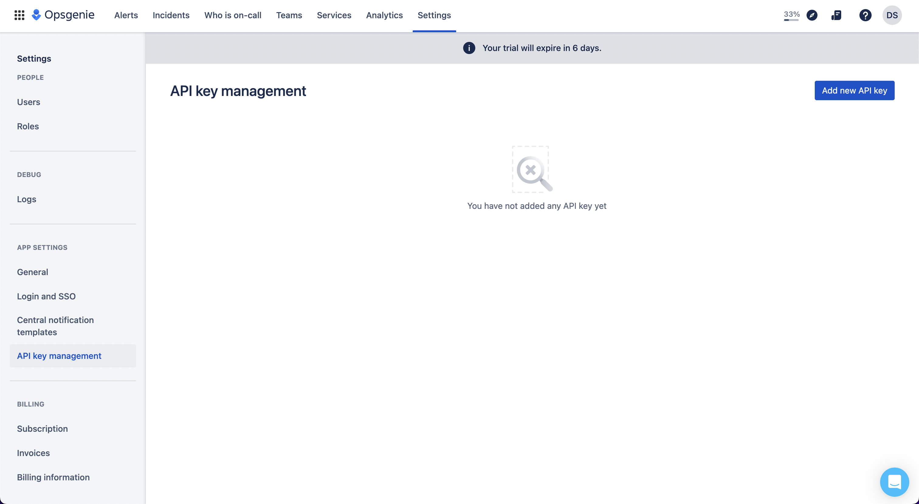 Login to the Opsgenie dashboard and go to the API Key Management section.\